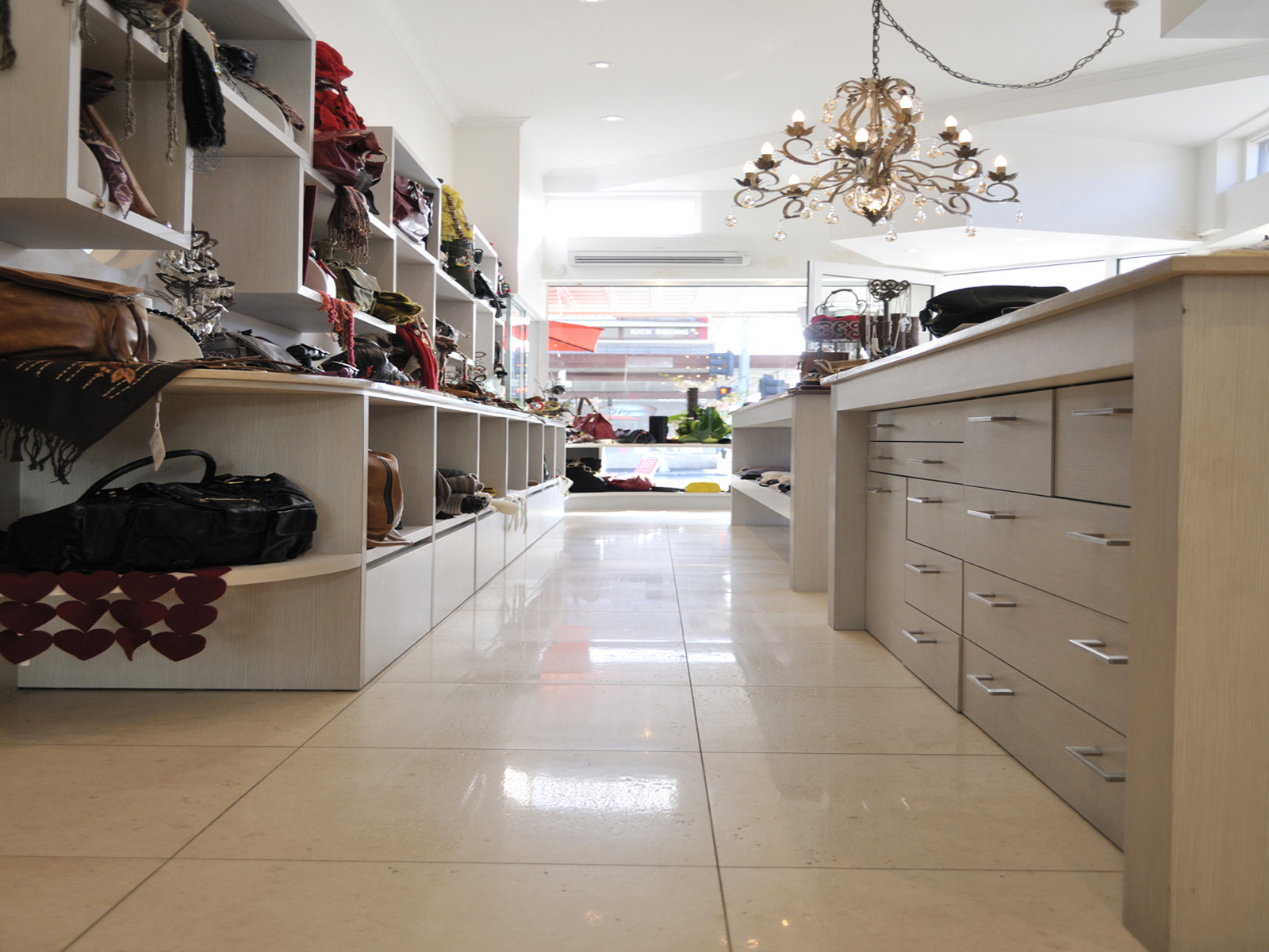 The client’s brief for this retail space was simple – it was to be beautiful. The design was to respond both to the adjoining coffee shop as well as to the product being sold. The items sold in the shop were bold, bright and made a real statement about the client and the St Kilda clientele. The shop and its fittings were therefore designed with simple lines and a neutral colour palette.